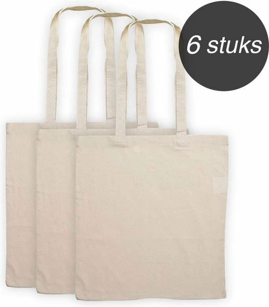 Katoenen draagtas met lange draaghengsels in naturel kleur. Formaat: 37 x 42 cm met een hengsel van 30cm. 140 grams katoen