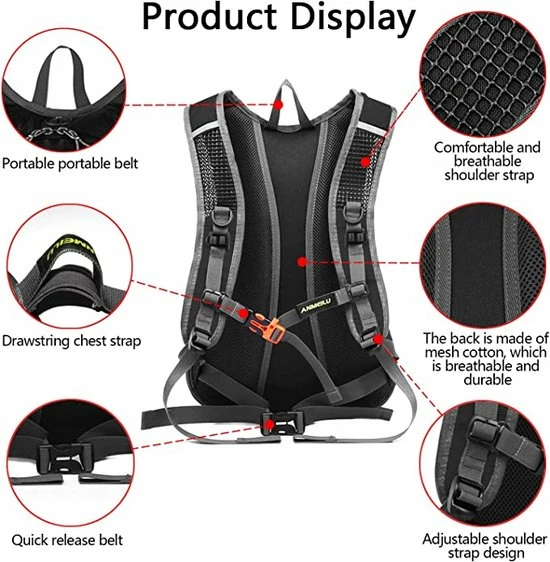 - Veelzijdig gebruik als sportrugzak, geschikt voor verschillende sportieve activiteiten zoals fietsen, mountainbike, hardlopen, bergbeklimmen, wandelen, klimmen en wandelen. Als rugzak is hij goed gekwalificeerd voor dagelijks gebruik, vrije tijd, business en werk.