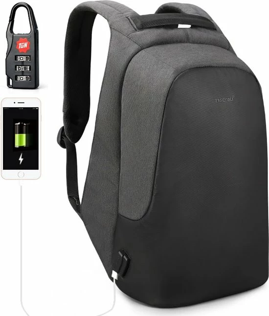 Op zoek naar een laptop rugzak of schooltas van hoge kwaliteit, veel draagcomfort en welke u overal een veilig gevoel geeft? Deze multifunctionele laptop rugzak of schooltas is voorzien van een laptop vak, anti diefstal ritsen, een usb functie en heeft voldoende ruimte voor al u eigendommen. De rugtas is gemaakt van een snijbestendige binnenkant, voorzien van geheime vakken en word geleverd met een GRATIS cijferslot. Hierdoor is het voor zakkenrollers onmogelijk om ongezien u waardevolle spullen te stelen. Dit alles maakt de Tigernu Trendy zwart een ideale rugzak / schooltas om dagelijks naar werk, school of op vakantie te gaan.