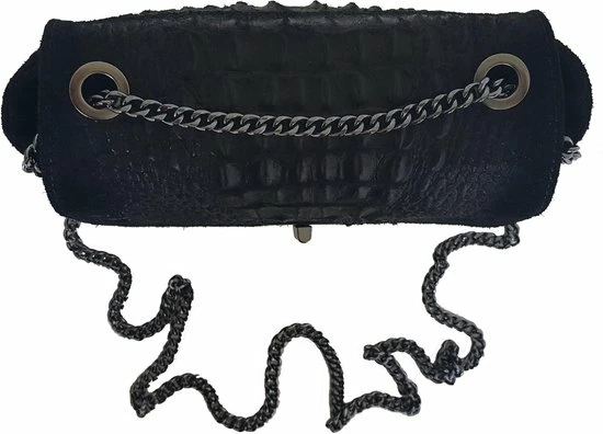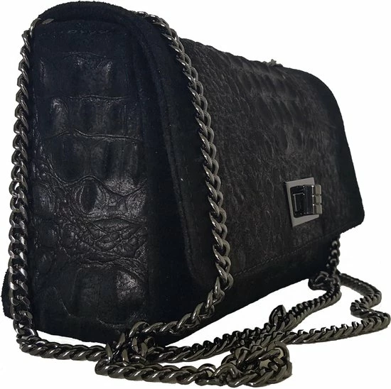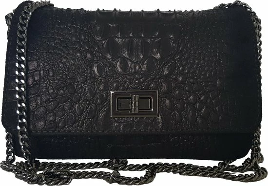 Een uniek comfortabel suede leer tasje, prachtig afgewerkt met een croco design in het midden. Het tasje heeft een praktische schouderriem die je heel eenvoudig zowel lang (enkel) als kort (dubbel) kunt dragen. Hierdoor kun je het tasje dus zowel over de schouder als crossbody dragen. Super handig! Het tasje sluit d.m.v. een overslag met een draai-klik systeem en een extra ritssluiting. Ook vindt u een extra vakje binnenin met ritssluiting. Het formaat is precies goed voor een middagje shoppen of een gezellig avondje uit. “Made in Italy”, dus top-kwaliteit. Niet voor niets een van onze bestsellers dus!
