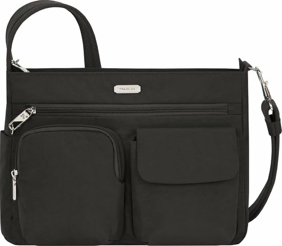 De Travelon Essentials collectie bestaat uit een serie βallroundβ tassen van hoogwaardig crinkle nylon met een modern-sportieve look en feel. Deze damestassen zijn gemaakt voor alledaags gebruik. Het stoere zwarte exterieur van deze fraaie tassen, in combinatie met het grijze interieur, is perfect in balans. Dit zorgt ervoor dat deze vlotte serie damestassen, voor jong en oud, een βsporty chiqueβ uitstraling heeft die helemaal in het hedendaagse straatbeeld past.