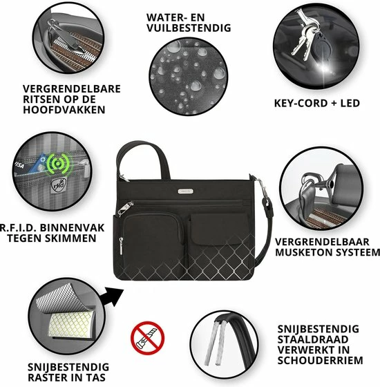 - Volop bescherming met VIJF punten anti-diefstal bescherming tegen zakkenrollers.