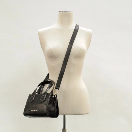 We waren al verliefd op de Satai big shopper van Valentino Bags! Goed nieuws, deze serie heeft ook een mini variant. Voor diegene met niet al te veel spullen op stap, is dit formaat ideaal. Belangrijke items zoals een pasjeshouder, telefoon, handgel en sleutelbos passen hier allemaal in. Meer heb je ook niet nodig, toch? De schoudertas is volledig in het zwart en heeft een opvallende crocoprint. Voor een luxe uitstraling staat de naam Valentino Bags in goudkleurige letters te weergegeven aan de voorkant van de tas. Daarnaast is de tas voorzien van twee korte handvaten en één verstelbare schouderband. Kortom: Jij kan hem eindeloos stijlen op jouw favoriete outfit.