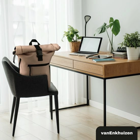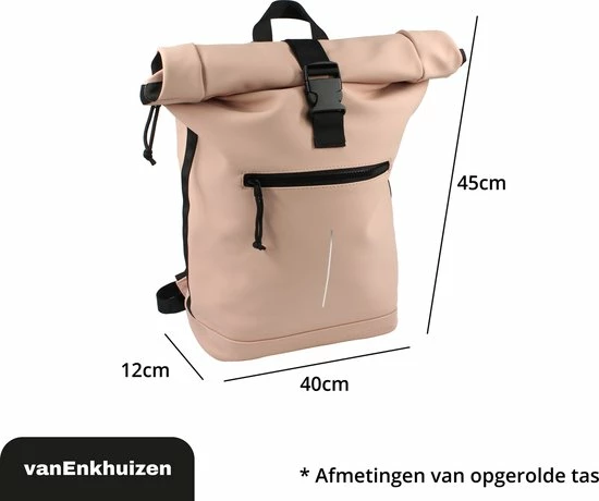 Neem je spullen overal mee naartoe in deze stijlvolle van Enkhuizen Rolltop Rugzak voor dames en heren. Maak de rugtas groter en kleiner door de sluiting op of uit te rollen. Het laptopvak biedt ruimte aan een 15,6 inch laptop, die droog blijft via het waterafstotende Tarpaulin. Houd je spullen warm of koud dankzij de thermo binnenzijde en gebruik de ritsvakken om kleine spullen weg te stoppen. Veilig de weg op in het donker is geen probleem door de reflectie strip op de rugzak. De gewatteerde schouderbanden zorgen voor ideaal draagcomfort, waardoor deze handige tas onmisbaar wordt.