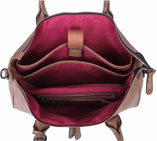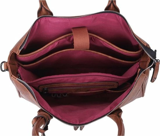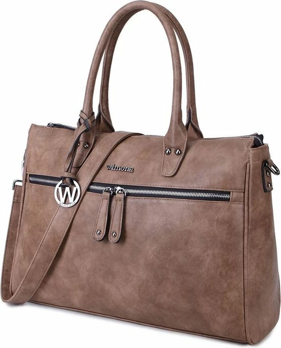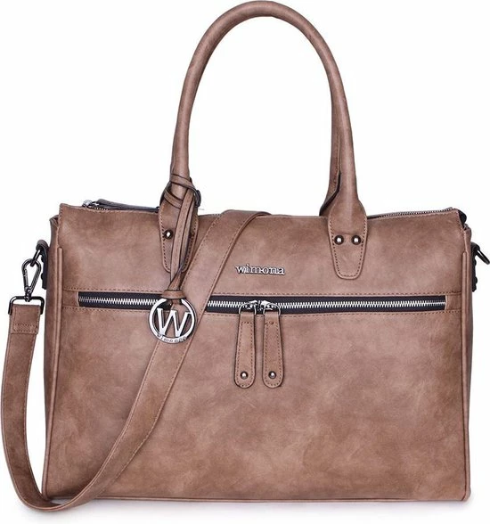 Deze Fabiana-Two schoudertas / laptoptas van Wimona is een zeer ruime tas waarin A4 documenten passen en waarin je tevens je laptop kwijt kunt. Door de vele vakken heeft deze tas een praktische indeling. Het hoofdvak is afsluitbaar middels een ritssluiting. Aan de binnenzijde heeft de tas een tussenschot met ritssluiting, een organisatiepaneel, telefoonvakje, ritsvakjes en penvakjes. Tevens zit in de tas een gewatteerd laptopvak voor max. een 15,6 inch laptop en een insteekvak voor een iPad of tablet. De tas kan in de hand gedragen worden met de stevige handvatten of over de schouder met de lange verstelbare, afneembare schouderband. Op de voorzijde en op de achterzijde van de tas zit een groot ritsvak.