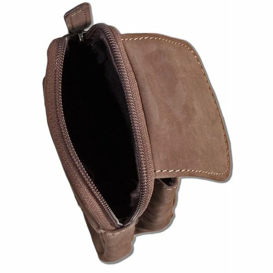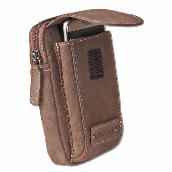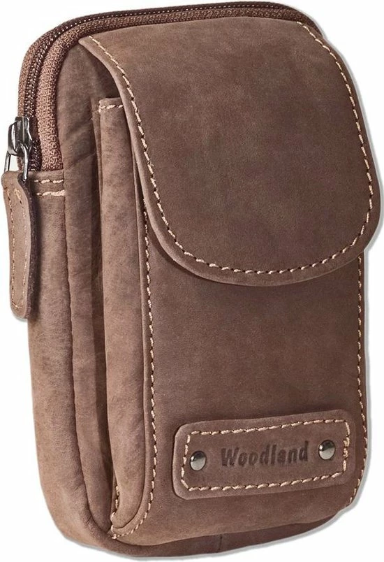 Dit praktische leren riemtasje van het merk Woodland is handig voor iedereen die zijn of haar mobiele telefoon, portemonnee of andere accessoires veilig en makkelijk op wil bergen. Het riemtasje is gemaakt uit echt donkerbruin leer en past om iedere riem, waarvan de riemstrook niet breder is dan 4 cm.