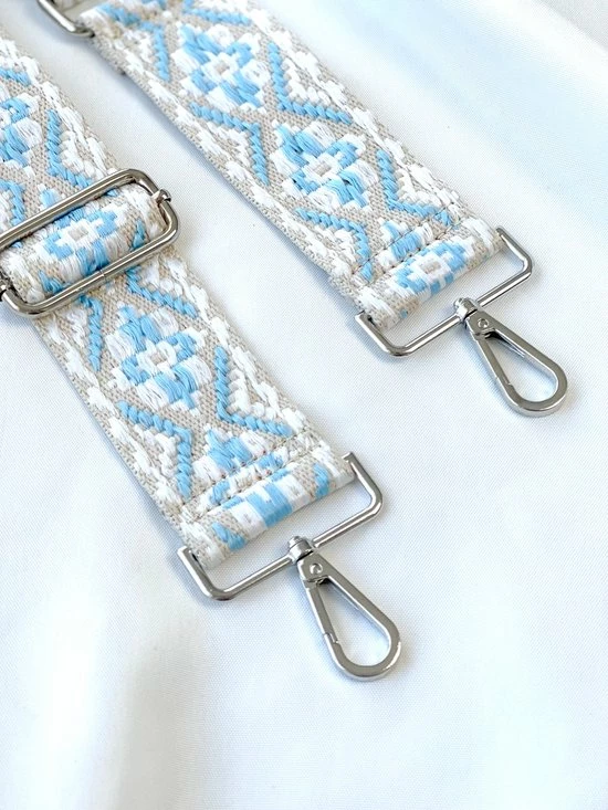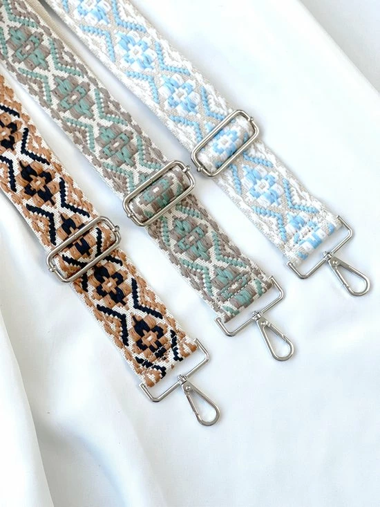 Draag jij je tas liever over de schouder of gekruist over het lichaam (oftewel crossbody)? Met dit prachtig geweven ‘Mindy’ hengsel kun je beide kanten op! Het is verstelbaar in lengte dus perfect aan te passen op hoe jij je tas op dat moment wilt dragen. De strap heeft een prachtige print en geeft een opvallende touch aan je outfit! De afmetingen van deze strap zorgen ervoor dat je ook zwaardere tassen met comfort kunt dragen.