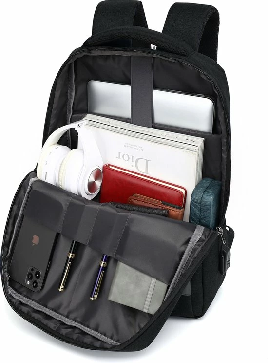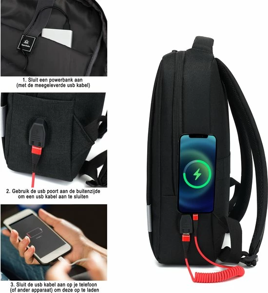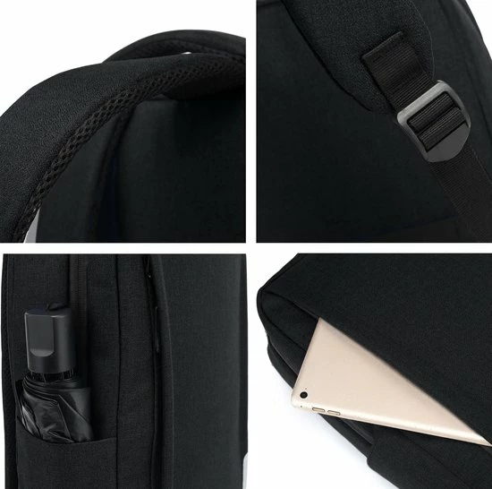 โDeze minimalistische unisex rugtas heeft alles wat je nodig hebt! Het 16 inch laptopvak gebruik je om laptops veilig in op te bergen. Dankzij de USB-poort laad je onderweg eenvoudig elektrische apparaten, zoals je telefoon, op. De ademende, verstelbare schouderbanden zorgen voor een optimaal draagcomfort. Daarnaast is de tas spatwaterdicht en is hierdoor bestand tegen een regenbui โ Kortom de ideale rugzak voor dagelijks gebruik of om mee te nemen op reisโ