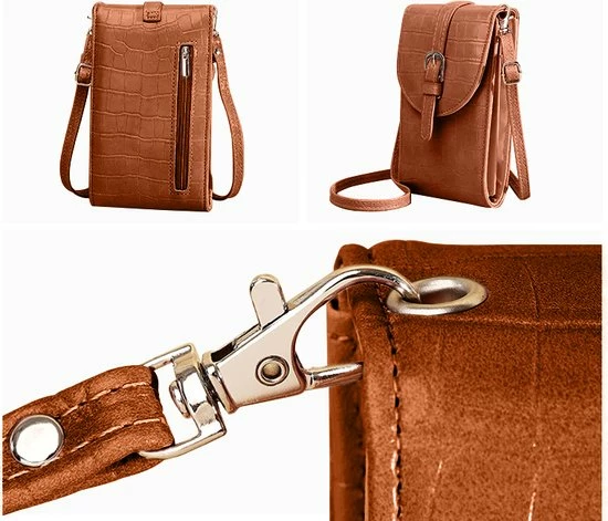 โDe schoudertas heeft een stijlvol Croco motief design, is lichtgewicht en superhandig om mee te nemen. Bescherm je mobiele telefoon en andere kostbare spullen zoals bankpassen en contant geld tegen diefstal of verlies โ Voortaan is het niet meer noodzakelijk om telkens, voor kleine spullen, een grote tas mee te nemen!โ