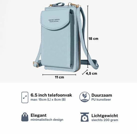 ✅ Geschikt voor: je smartphone, pasjes, sleutels, cosmetica, contant geld